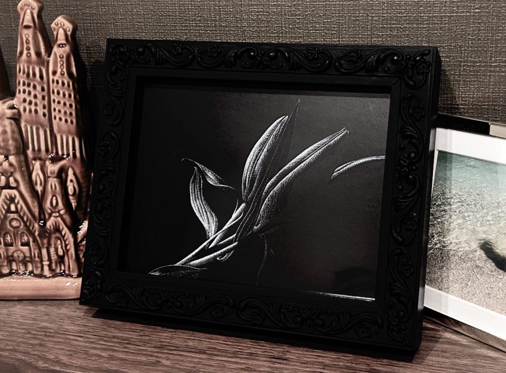 先日絵を購入した。ペン画家都築琴乃のモノクロの点描画だ。